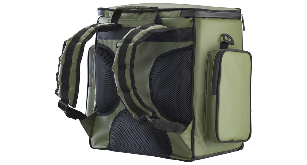A lightweight and extremely durable backpack with boxes for tackle and plenty of space. The PVC outer material and water-resistant zips prevent water from entering the interior even during heavy rain showers. The rubberised bottom also prevents water from wet ground from soaking in. The special design of the main compartment with adjustable internal dividers allows you to pull out individual boxes without the remaining boxes sliding down. The heavily padded back and adjustable padded carrying straps offer high comfort when carrying over longer distances. The extra-large ABS zip teeth do not corrode and can withstand heavy loads. The large top compartment offers plenty of storage space for accessories of various sizes or up to 4 additional large D-VEC LR jewellery boxes. The large front pocket is designed to fit D-VEC jewellery boxes in size M perfectly. Two large side pockets measuring 25 x 16 cm offer storage space for pliers, knives, documents, etc. The padded shoulder strap offers optimal comfort. It is equipped with non-slip pads on the underside to prevent it from slipping easily on the boat. The backpack comes with 3 large LR D-VEC boxes and one large LD D-VEC box.