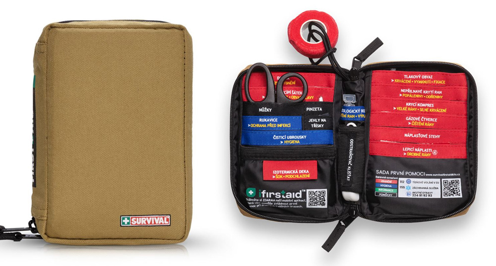 Color-coded sections and a clear organizer allow immediate orientation in emergency situations. Everything is fully in Czech – item names, instructions, and first aid cards. The free iFirstAid app is also included.